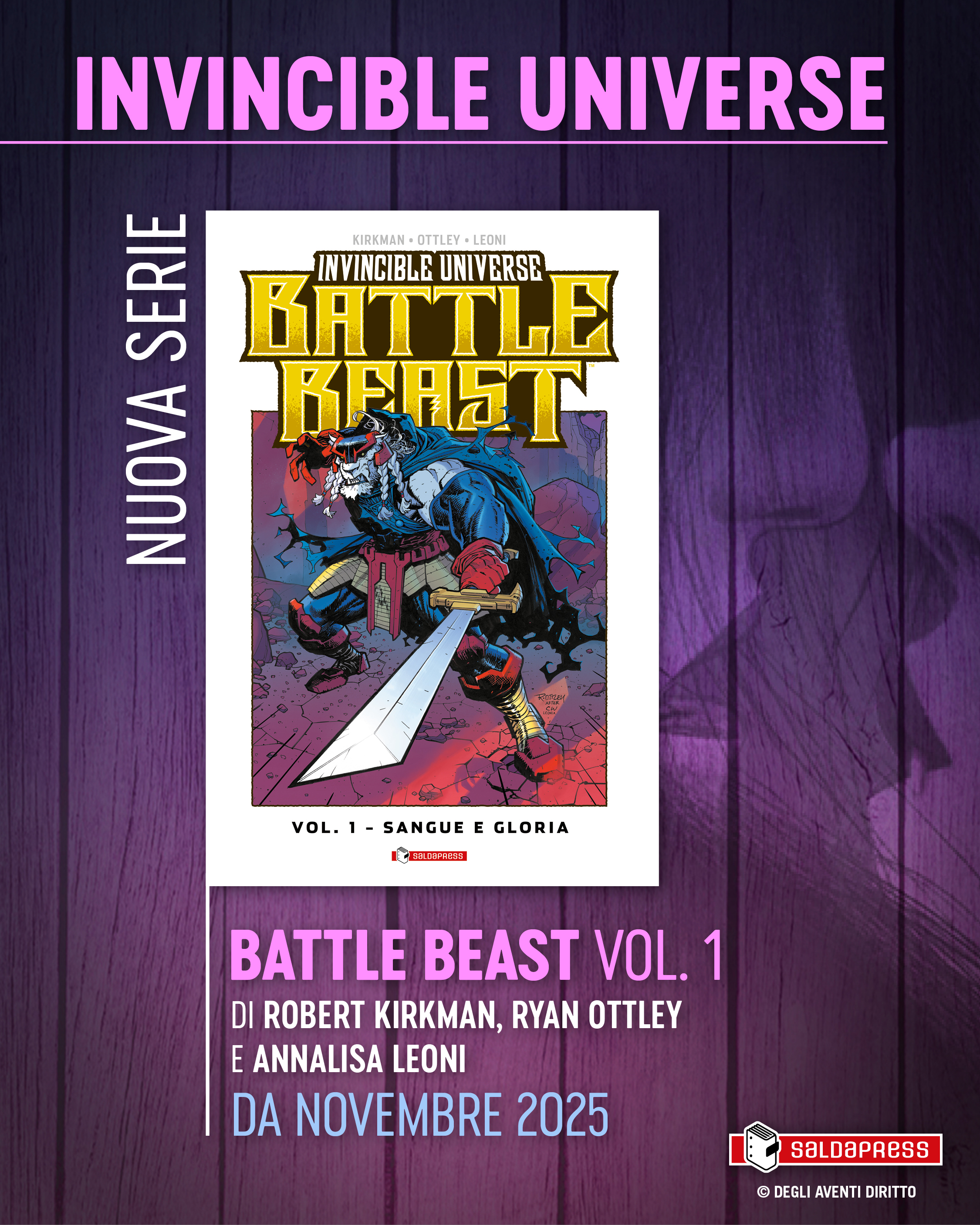 - BATTLE BEAST VOL. 1 (novembre 2025, serie) di Robert Kirkman, Ryan Ottley e Annalisa Leoni